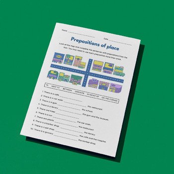Engage your students with this vibrant and interactive worksheet focusing on prepositions of place (in, on, under, next to, etc.). Perfect for primary grades, this resource includes: